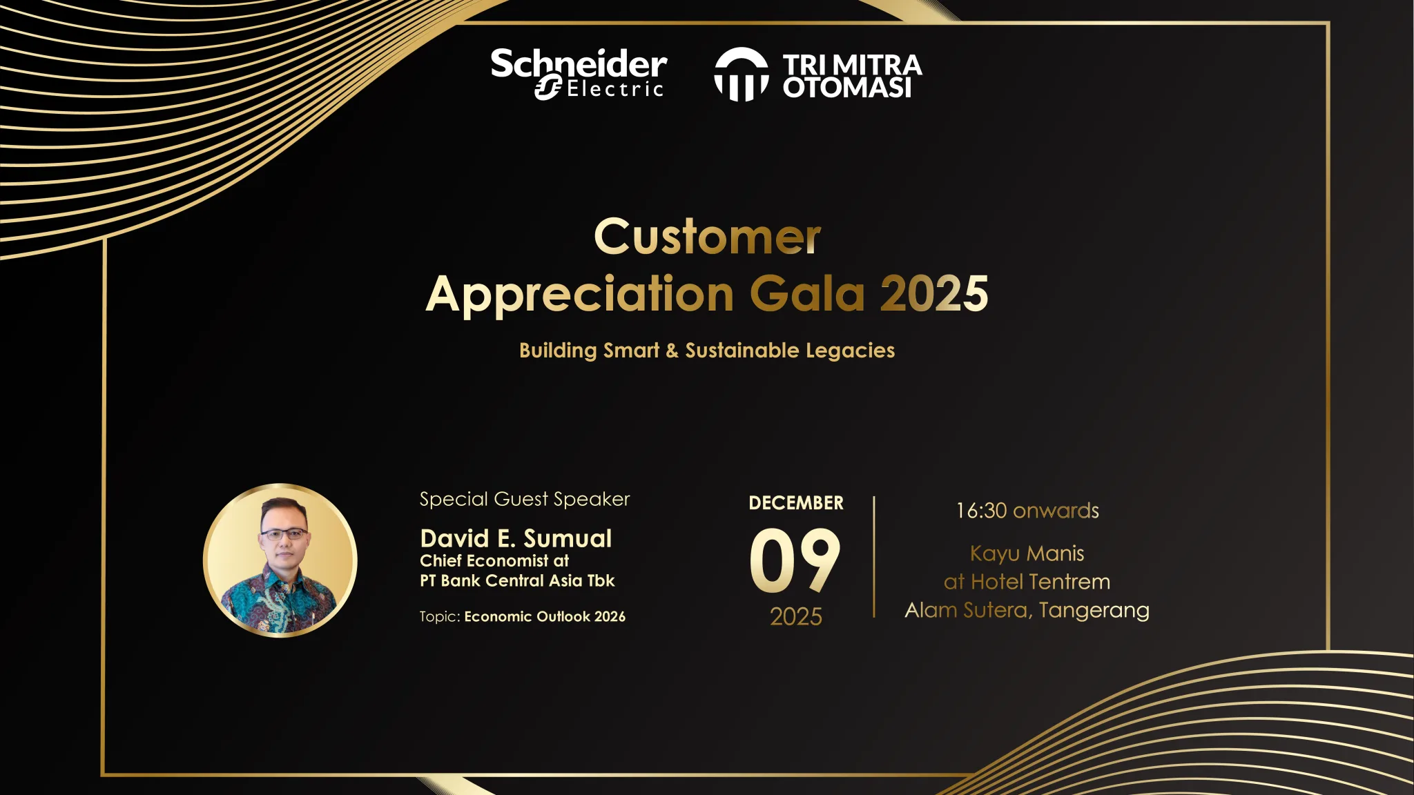 Ajang penghargaan bagi para mitra setia Tri Mitra Otomasi yang dikemas dengan wawasan strategis melalui sesi Indonesia Economic Outlook 2026 bersama ekonom David Sumual. Selain mempererat hubungan bisnis, acara ini memberikan gambaran mendalam mengenai proyeksi ekonomi nasional, tantangan pasar global, serta peluang investasi di sektor industri guna membantu para mitra dalam mengambil keputusan bisnis yang tepat sepanjang tahun 2026.